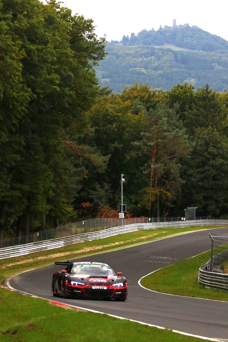 Hinter dem Spitzentrio folgte gleich die nächste faustdicke Überraschung. Dominik und Marcel Fugel fuhren zusammen mit Benny Leuchter im Audi R8 LMS GT3 Evo II auf den vierten Rang. Das Fahrzeug wird mit dem von Volkswagen entwickelten Bio-Kraftstoff E20 Gasoline betrieben, der zu 60 % regenerativ ist. Ein toller Einstand des ersten nachhaltigen GT3-Boliden in der Grünen Hölle.